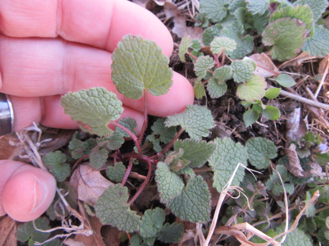 Lamium amplexicaule (Henbit) on 3-3-20, #673-5.