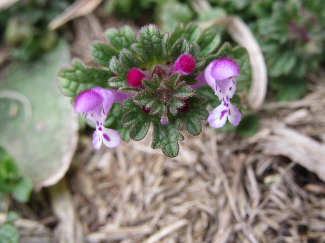 Lamium amplexicaule (Henbit) on 3-4-20, #674-5.