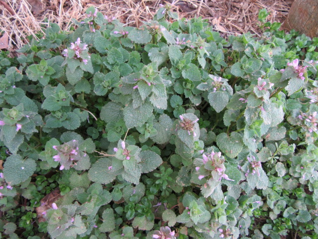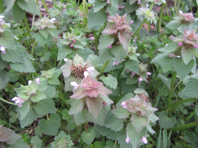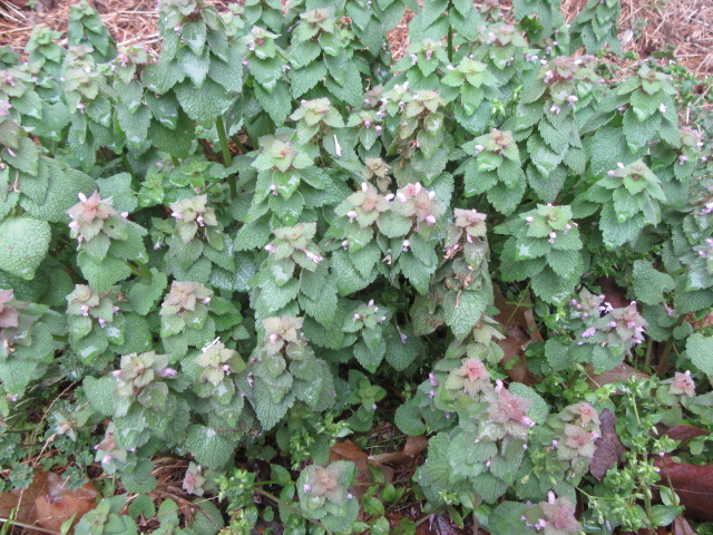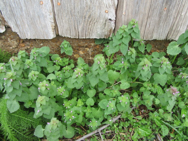 The Lamium purpureum is in heaven along the south side of the chicken house. The conditions are just right and they grow to about a foot tall.