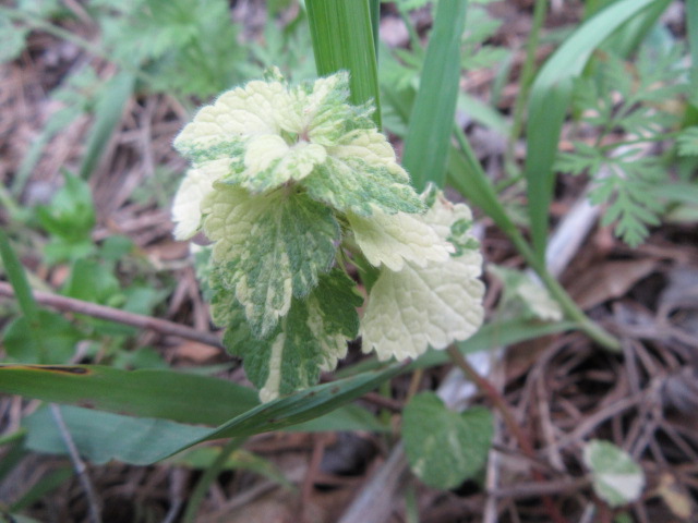A Lamium purpureum with variegated leaves came up in the flower bed along the north side of the house in 2024…
