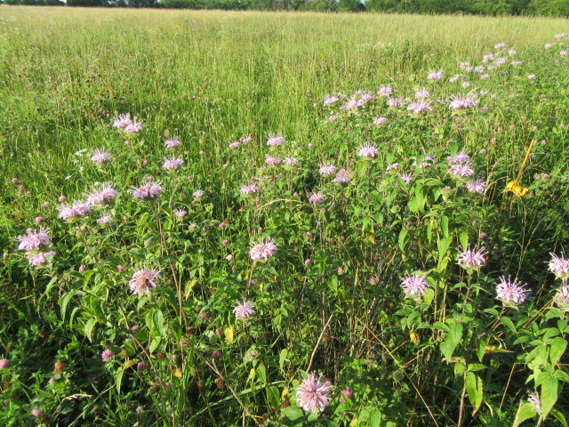 The above photo is of a colony of Monarda fistulosa growing along the fence between the front pasture and the Rock Island Trail.