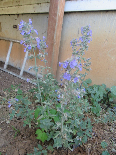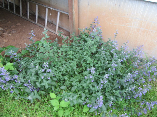 I bought my Catmint ‘Walker’s Low’ (as the label says) on April 23, 2017. I transplanted it in the corner between the back porch and the kitchen window. The soil here is just common old fill dirt from when the foundation was dug. Normally there are just weeds growing here so the Catmint will be a much-needed change