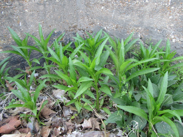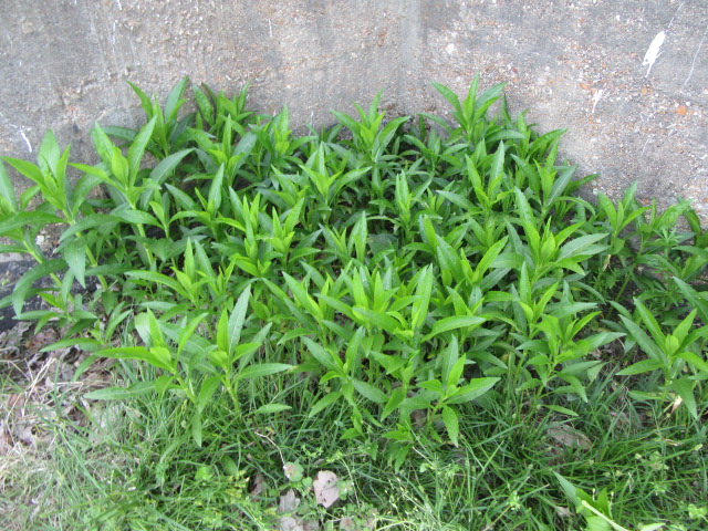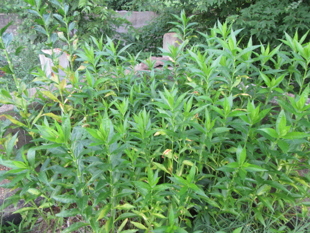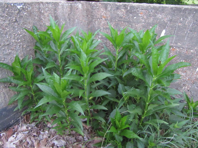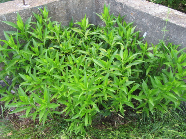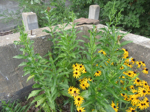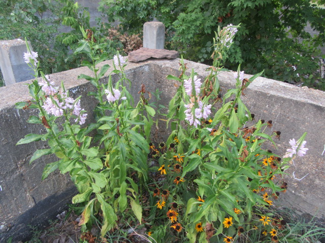 The Obedient Plant is almost as tall as the old foundation now. We have had a lot of rain in May, so it is really doing well.
