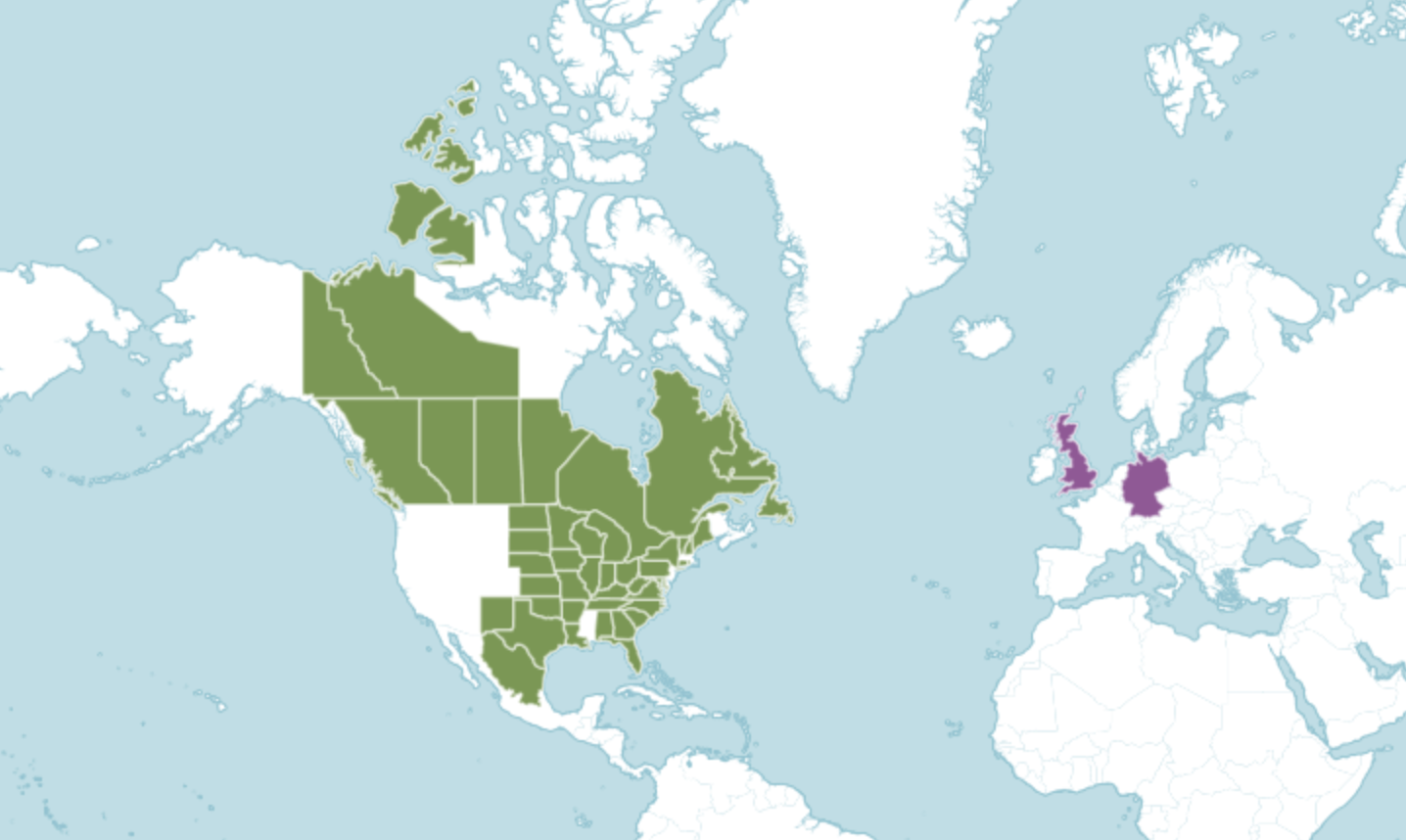 The map on iNaturalist shows where members have made observations. Anyone can join and it is a great website to confirm and share your observations. The maps on iNaturalist are continually updated as members post new observations. I post all my observations on iNaturalist.