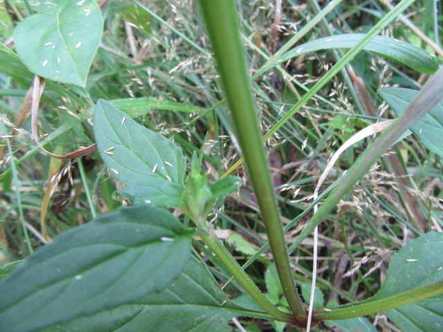 Prunella vulgaris has hairy square stems that sometimes branch at the base. The hairs are found mostly along the angles and at the nodes. The stems may also be mostly hairless.