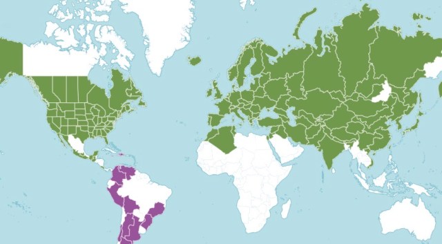 The above distribution map for Prunella vulgaris is from Plants of the World Online is for the species and all the subspecies. Areas in green are where the species is native and purple is where it has been introduced. Prunella vulgaris subsp. lanceolata is the only subspecies native to the U.S. and is the one most commonly observed in Missouri. The map on the USDA Plants Database for the United States and Canada is basically the same