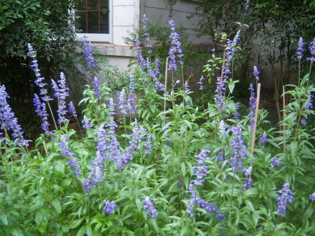 I bought seeds of the Salvia farinacea ‘Blue Bedder’ (Mealycup Sage) from the Family Dollar store in Leland, Mississippi in the spring of 2010 or 2011. I transplanted the seedlings in the corner bed next to the den at the mansion when they were big enough. They did GREAT and even reseeded in 2012. I moved back to Missouri in February 2013 so I don’t know if they came up again or not…