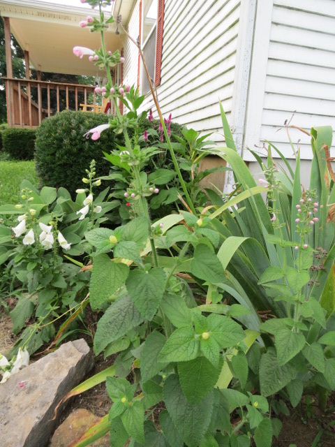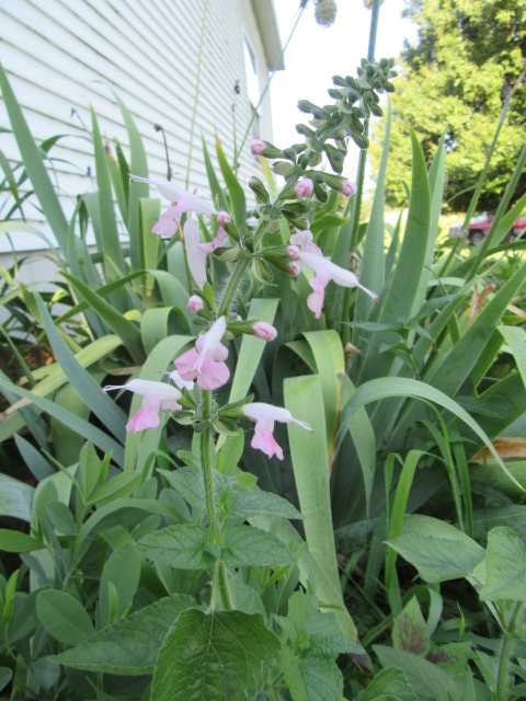 The Salvia coccinea came up from seed in 2018 and 2019 but not in 2020. Then, in 2021, a pink and white bicolor came up in the southeast corner bed… I guess I should buy more seed…