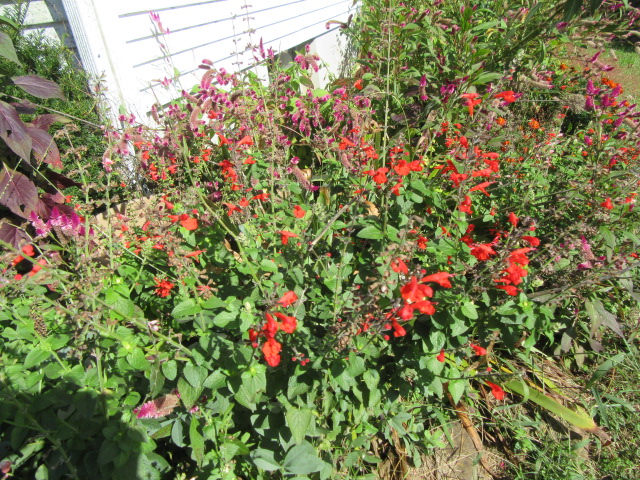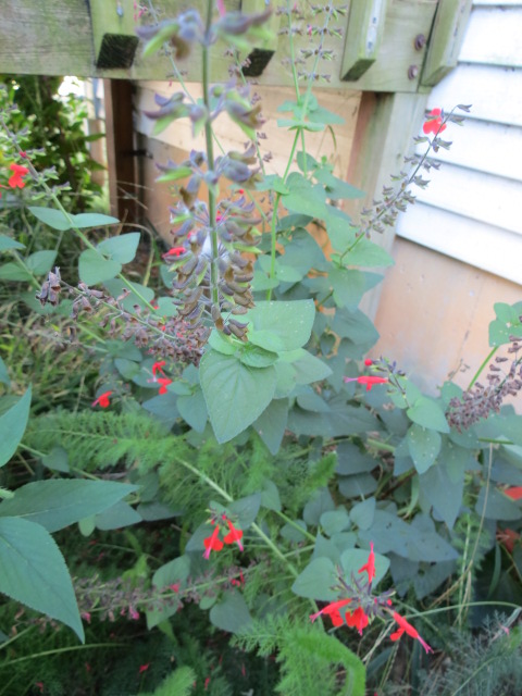 Even when temps start getting cooler the Salvia coccinea continues to flower right up until a bad zap. The “F” word…