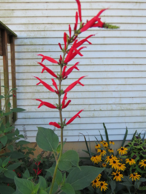 Salvia elegans is considered a tender perennial in USDA Zones 8-11, but here it has to be grown as an annual. They work fine in average, well-drained soil and are only fairly drought-tolerant. They do best in fertile, well-drained soil that is consistently moist. I amend the beds every few years with “The Good Stuff” (which is decomposed cow manure and hay from where I feed the cows that has decomposed for a year or so).
