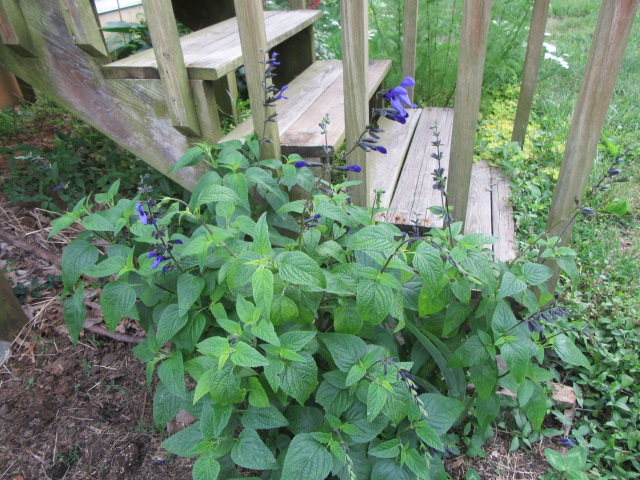 I brought three Salvia guaranitica ‘Black and Blue’ home from Wagler’s Greenhouse on April 27 in 2019. They did great over the summer and even returned in 2020.