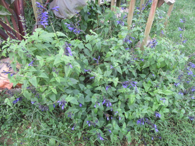 Salvia guaranitica is native to Brazil, Uruguay, and northern Argentina where they grow as perennials or subshrubs. In their native environment, they grow from 3-5 feet or more in height. Grown as a perennial or annual, depending on where you live, they “normally” grow 20 to 30″ or so in height and width. I say “normally” because you never know what plants will do given optimum conditions. My plants branched out just fine on their own, but you can cut them back in late spring so lower their mature height and make them branch out more.