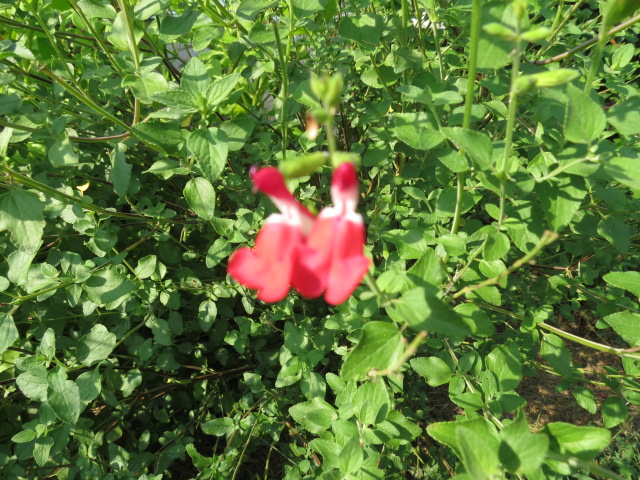 Salvia microphylla ‘Hot Lips’ starting to flower on 6-11-13, #155-27.