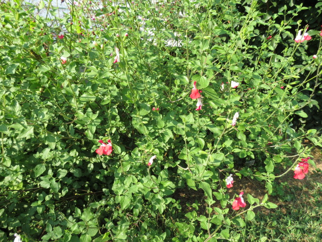 Salvia microphylla is native to Arizona, Guatemala, and most of Mexico. The cultivar ‘Hot Lips’ was introduced by Richard Turner of California. His maid had brought it with her from her home in Mexico. I had read previously that someone had given it to her.