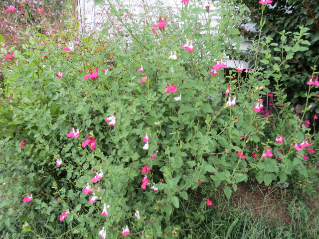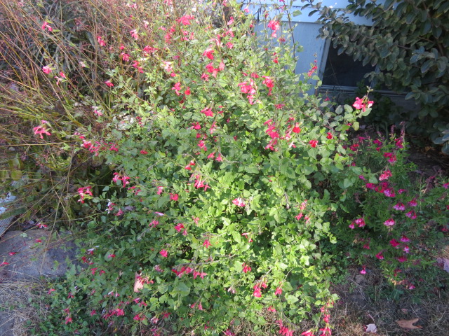 Even as the temps start getting cooler, the Salvia microphylla continues to flower up a storm.