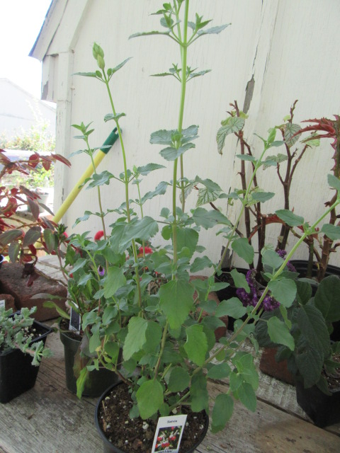 My sister and niece came down from the city to go plant shopping at the four local Amish greenhouses on May 5 (2018). Our third stop was Mast’s Greenhouse. When I was finished looking, my sister was still not satisfied so I started following her around. Wouldn’t you know it, she spotted a few Salvia microphylla ‘Hot Lips’ I had missed. I told her she should get one and told her sometimes the flowers would be bi-color, sometimes solid white or reddish. She said she wanted one that was all bi-color and didn’t buy one. GEEZ, SIS! I don’t think she got what I said… There were only two or three left so you can bet I brought one home. I wish I bought them all.