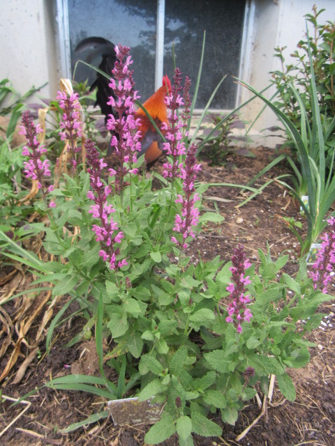 The Salvia nemorosa ‘New Dimensions Blue’ has proven to be a great performer. It has survived two winters (one which was VERY COLD) and emerged early. It has had no problems with the intense sun in the south bed and has endured fairly dry conditions when I didn’t have time to water. So, I would give it a Belmont Rooster FIVE GOLD STAR rating.