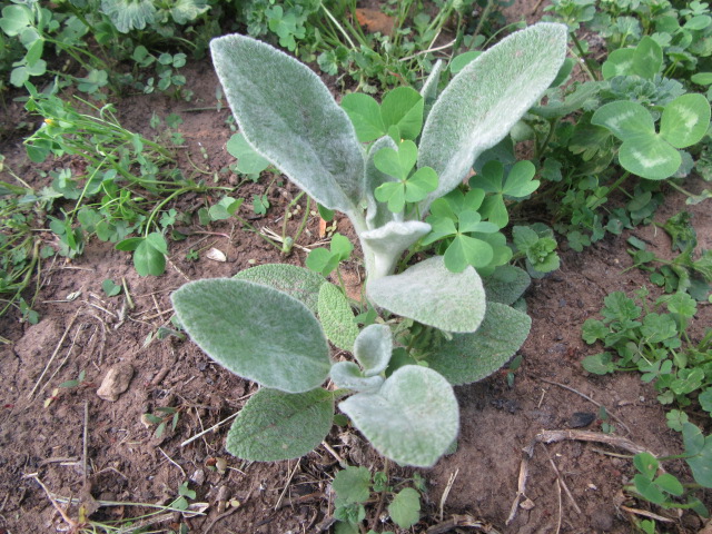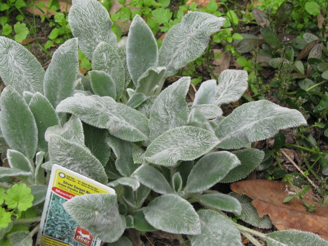 Stachys byzantina ‘Silver Carpet’ in the backyard at the mansion on 5-1-09, #12-55.