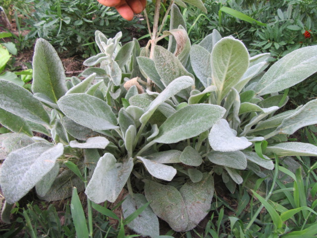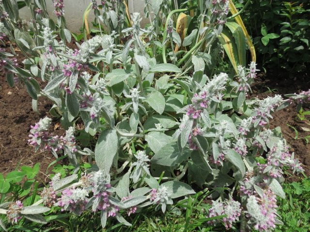 I always liked the Stachys byzantina for their soft, silver-white, fuzzy leaves. While they are considered invasive for some, I certainly have not had that problem. A little more would be better. They also self-sow, but mine have not even done that. Maybe I should leave more flowers on one of the clumps to see what happens.