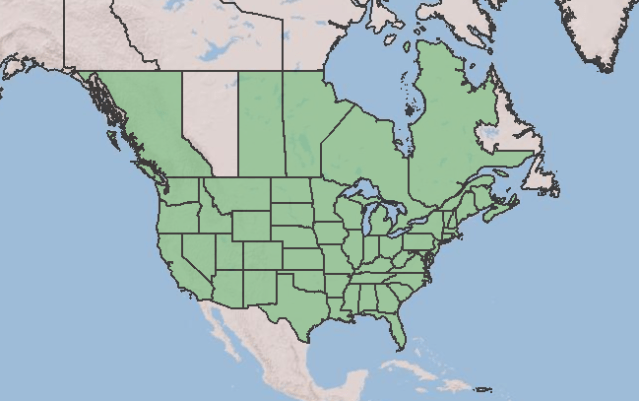 Distribution map for Teucrium canadense (including all varieties) from the USDA Plants Database. Published on the internet at https://plants.sc.egov.usda.gov/home. Retrieved on May 14, 2021.