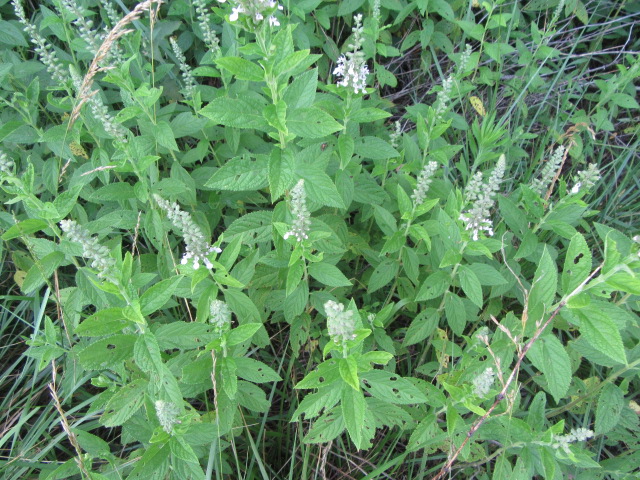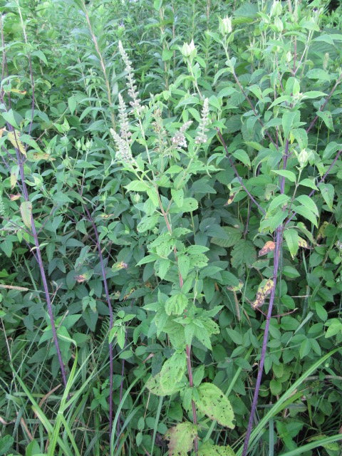 Accepted infraspecific names of Teucrium canadense (4) (Updated on 12-28-25 from Plants of the World Online): *Teucrium canadense var. canadense (autonym), Teucrium canadense var. hypoleucum Griseb., Teucrium canadense var. occidentale (A.Gray) E.M.McClint. & Epling, Teucrium canadense var. virginicum (L.) Eaton. When an infraspecific taxon is named, an autonym (“type-specimen”) is automatically generated whose description is closest to the (original) species. All have their own list of synonyms. The species here on the farm is likely Teucrium canadense var. canadense.