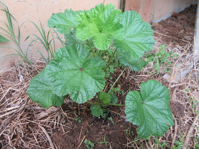 So, I wound up with a pot (among others) and took them to the counter to pay for my winnings. I asked Mrs. Wagler what it was and she said it was a Miniature Hollyhock. She explained the color of the flowers otherwise I might have put it back. I like Hollyhocks when they are in other people’s yard. After she described the flowers, I realized it was likely the same as the plants at church…