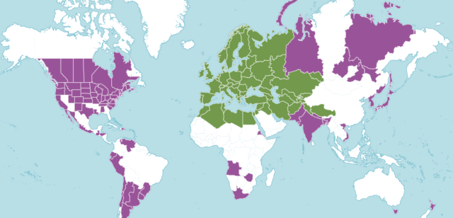 The above distribution map for Malva sylvestris is from Plants of the World Online. Areas in green are where the species is native and blue where it has been introduced. The map for the United States and Canada from the USDA Plants Database is somewhat different.