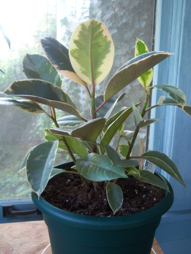 Ficus elastica ‘Variegata’ on 4-18-12, #87-10.
