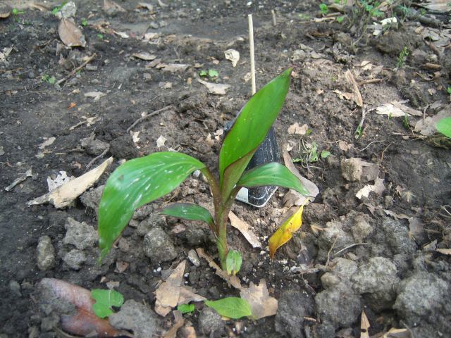 Before I bought my Red Abyssinian Banana I already knew where I wanted it. I wanted this banana in the middle of the Colocasia esculenta in the west bed… Well, that would have been great except for the fact I bought it as a starter plant which was very small. The Colocasia soon towered above the banana and I wanted the opposite.
