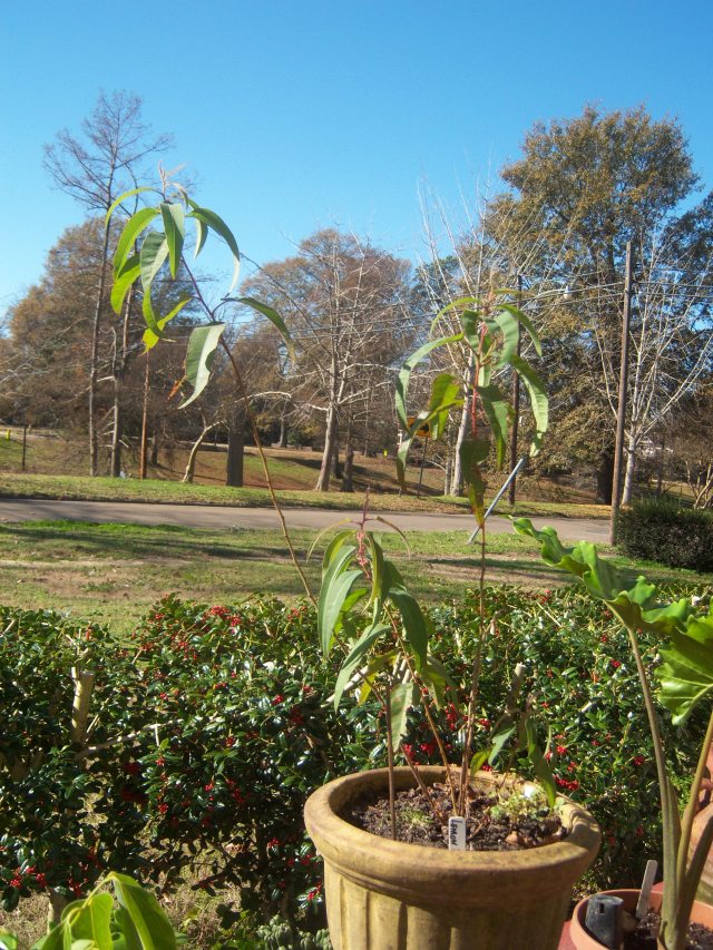 Corymbia citriodora (Lemon Eucalyptus) #1 at 42″ tall on the front porch of the mansion in Leland, Mississippi on 12-18-09, #45-24.