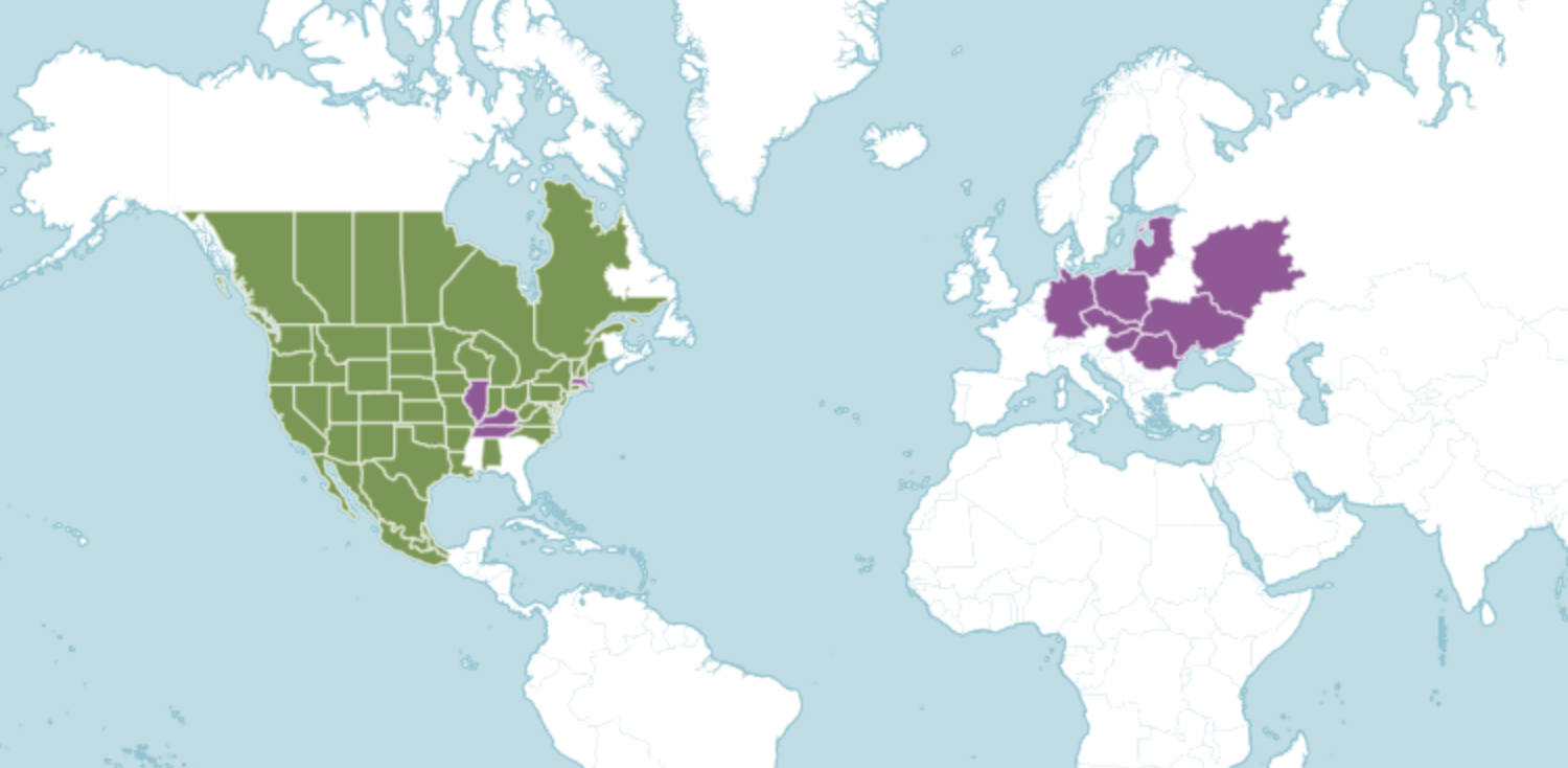 The map on iNaturalist shows where members have made observations. Anyone can join and it is a great website to confirm and share your observations. The maps on iNaturalist are continually updated as members post new observations.