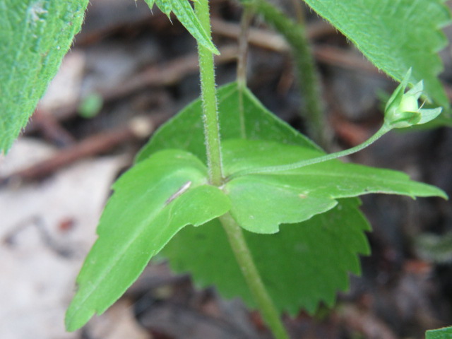 The lower leaves seem to be sessile but not clasping with rounded tips and lack the “teeth” seen on the upper leaves. The leaves and stems are slightly pubescent (fuzzy).