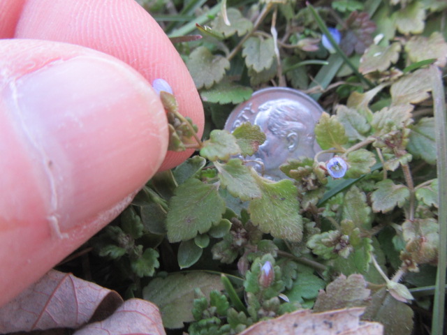 Veronica persica (Bird’s Eye Speedwell) on 2-21-20, #670-8.