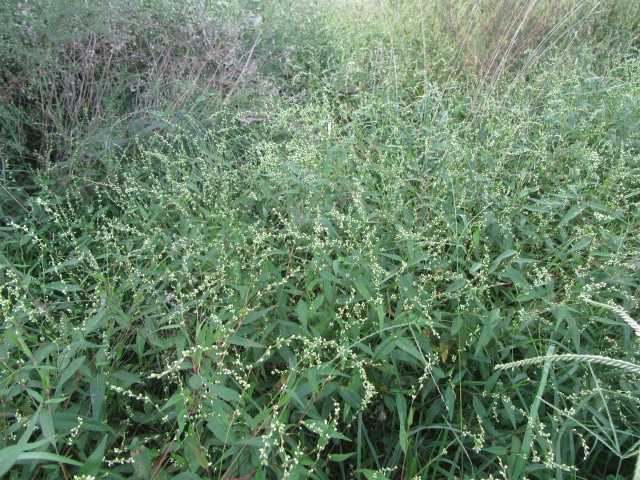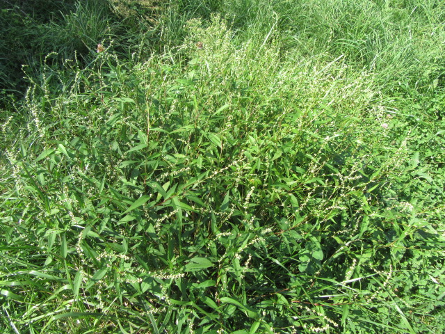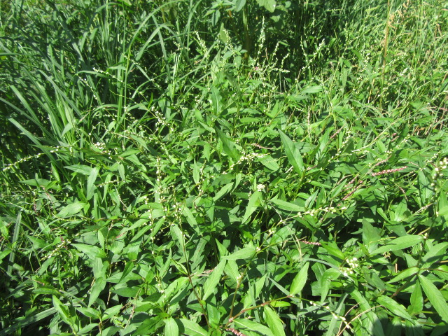 Most Smartweeds are decumbent, which means they sprawl but turn upward toward the end. They root at their leaf nodes which allows them to spread quite readily. Even though these plants may appear to be only around 2′ tall (more or less), if you pull them will see the entire plant is much longer and has a lot of stems doing the same thing… Branching out… Some species grow more upright than others especially if they can lean on something.