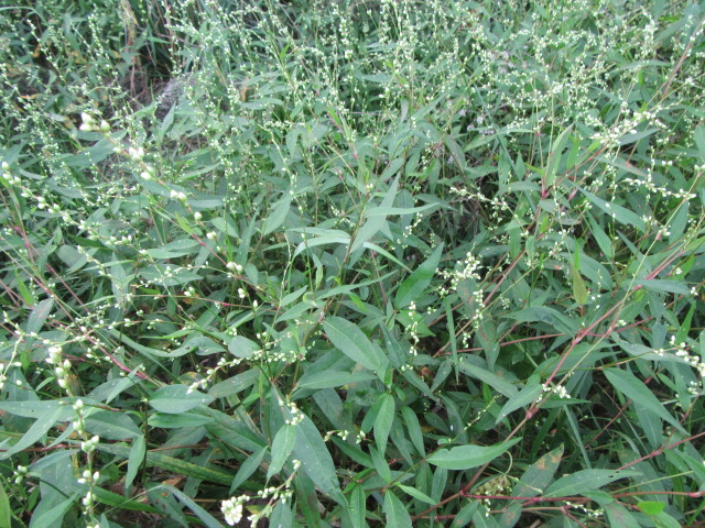 Persicaria hydropiper (Water Pepper) with a few Persicaria longiseta (Oriental Lady’s Thumb) on 9-14-19, #631-1.