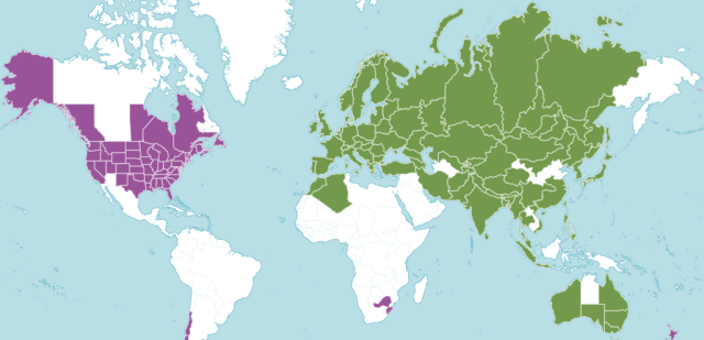 The above map is from Plants of the World Online and shows where Persicaria hydropiper is native (green) and where it has been introduced (purple). The map on the USDA Plants Database for the United States and Canada for Polygonum hydropiper is similar.