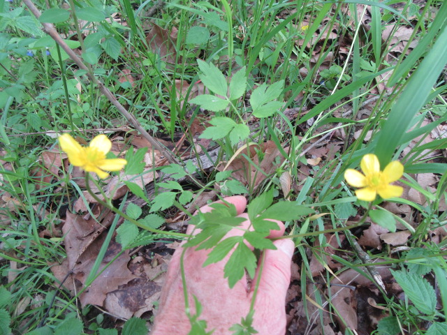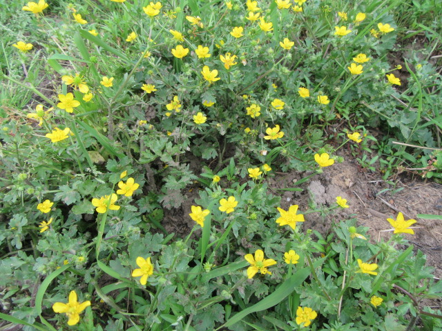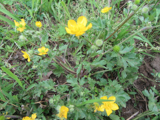 Many Ranunculus species prefer fairly moist soil, but this one also tolerates dryer soil. Here, there are colonies in part shade to full sun. In other areas, they can be found in wooded areas, along stream banks, pond margins (and where they drain), low areas in pastures, and hayfields… They do seem to prefer rich, loamy soil. Some websites say this species is rarely found in damp habitats while others say it is a preference. Hmmm…