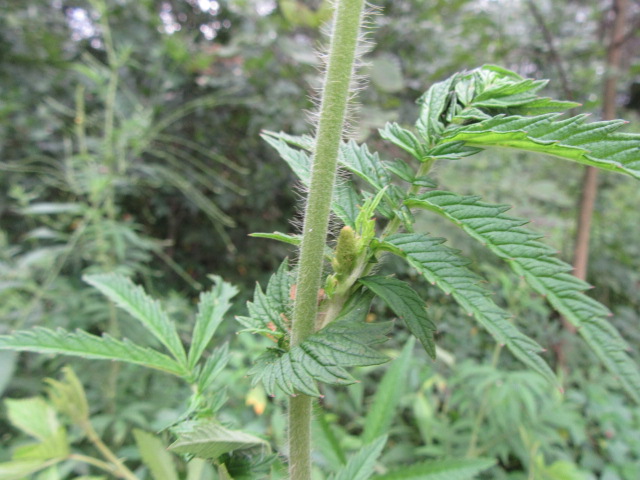 Agrimony parviflora can grow to almost 6’ tall in ideal conditions on stout stems. I am 5’ 8” and I have seen them taller than me. The central stems are unbranched and can be light green, reddish green, or brownish green. They are round without any ridges and covered with white or light brown hairs (pubescent).