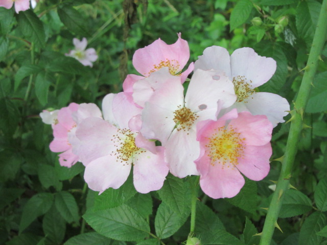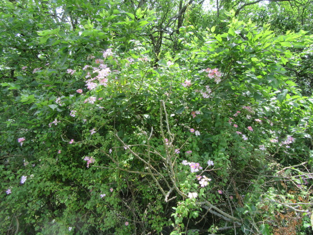 I don’t mind roses growing along fences or among the trees because they provide shelter and food for wild critters. If they were growing out in the middle of the pasture or in the garden it would be a different story.