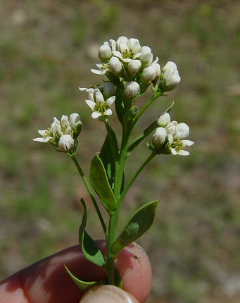 The upper part of the stem branches out somewhat (auxiliary branches), and each stem terminates in several umbellate clusters of 5-12 flowers. Each flower is attached by short pedicles (flower stems). The pedicles are somewhat of different lengths giving the clusters a flat-topped appearance, as a whole, the inflorescence is more or less dome-shaped.