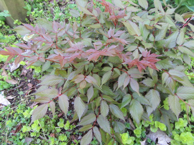 Astilbe x arendsii ‘Fanal’ on 3-30-20, #681-7.