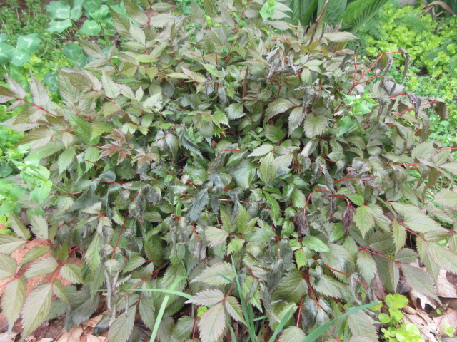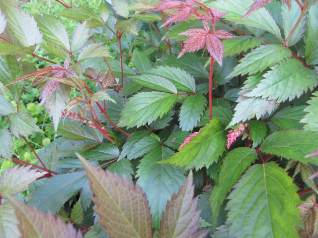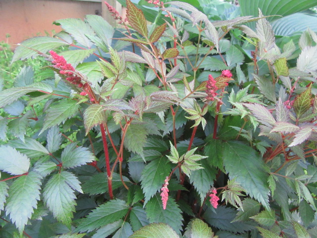 Astilbe x arendsii ‘Fanal’ after I brought it home on 6-7-18, #455-4.