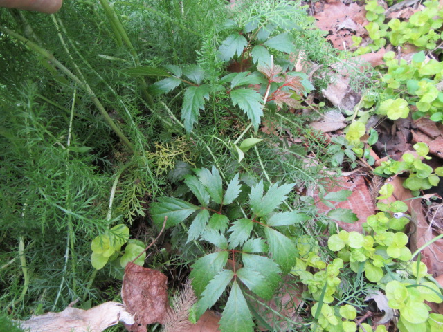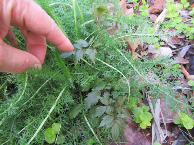 Peeking through the Achillea millefolium on 4-21-25. I moved the Astilbe forward last spring because it was getting taken over by the size of the Hosta ‘Empress Wu’. Now it has the Achillea to contend with…