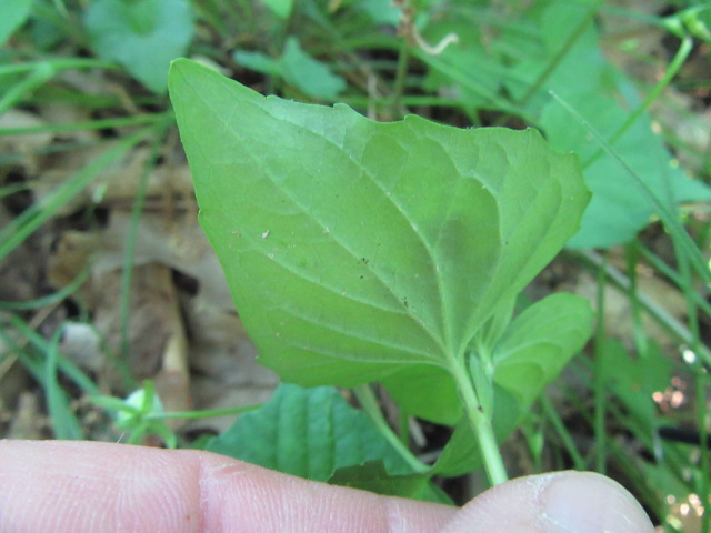 The above photo was taken in a friend’s woods on 5-3-24… Ummm… This is evidence of the lack of basal leaves… Well, heck. That is evidence of V. pubescens… Ignore the Persicaria virginiana in the photo…