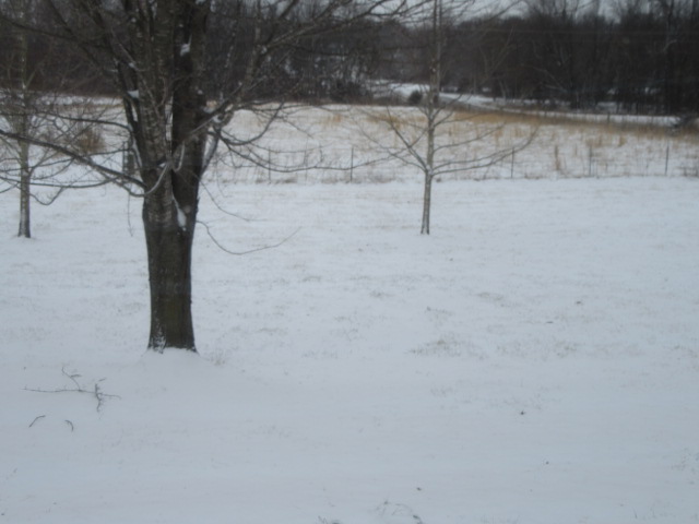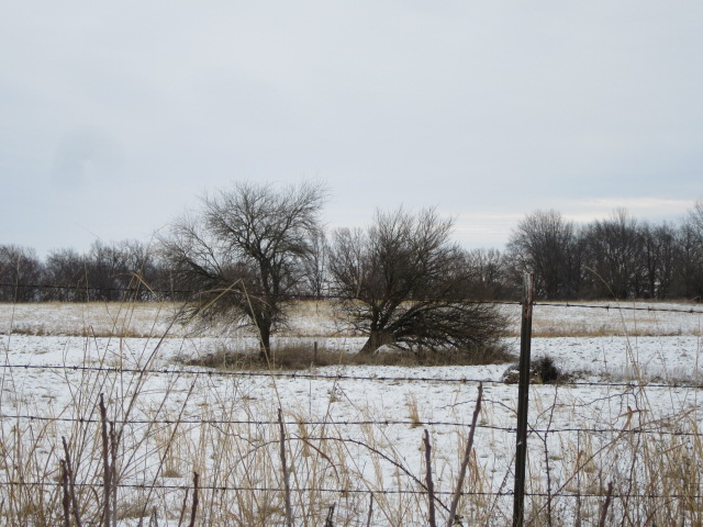#2. On the way to the park, I decided to take a photo f the front pasture looking toward the twin Mulberry Trees. A couple of years ago one of them started leaning… There is an old hedge post growing at the base of the tree that is leaning from an old fence. I think that is the only thing holding it up.