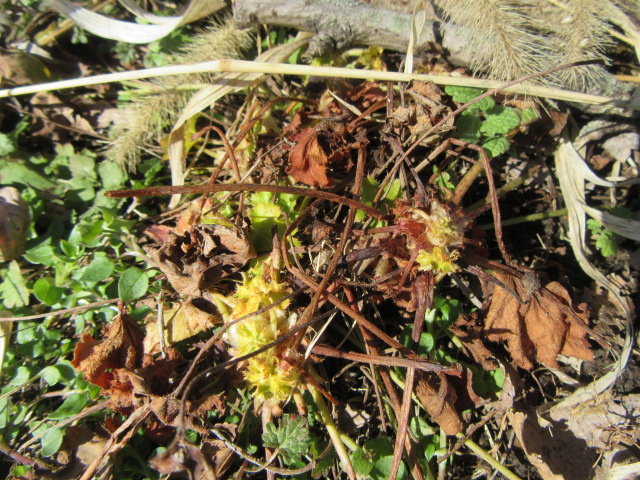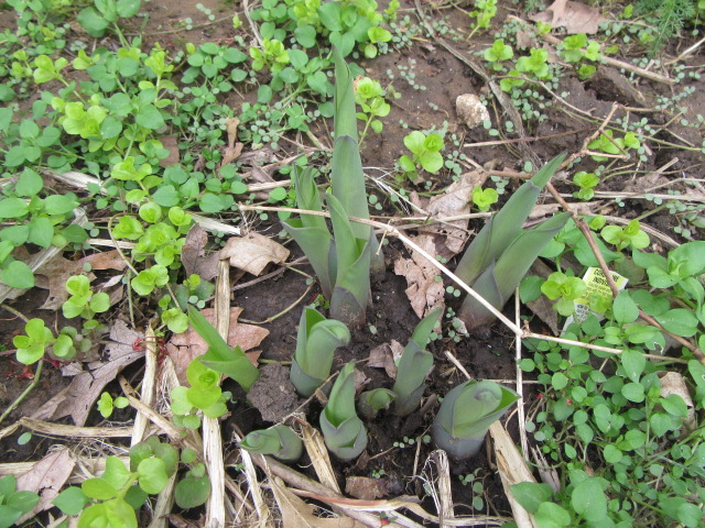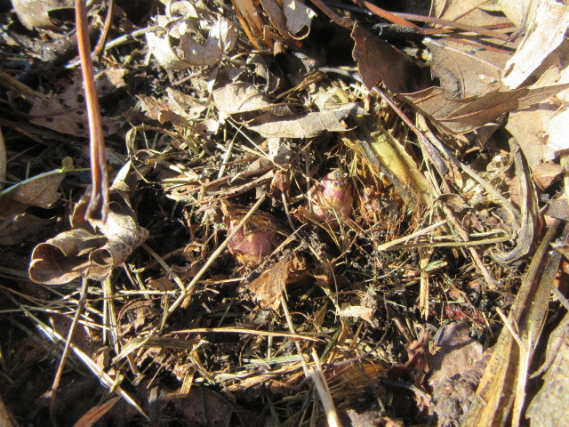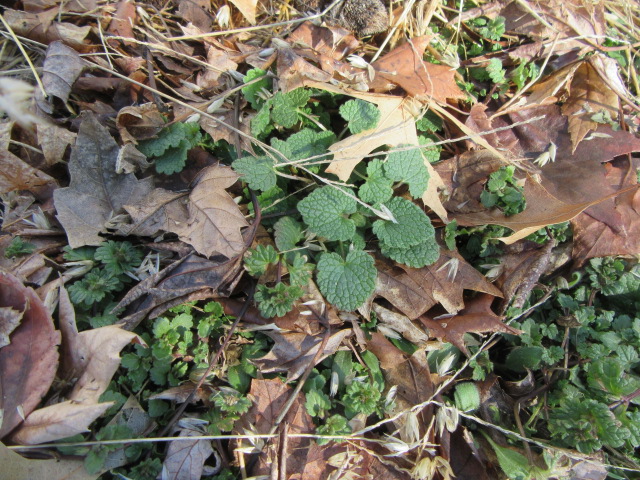 I am not sure which of the two species this photo is of since they are both everywhere and growing together (for the most part). Their early leaves look so much alike you really can’t tell them apart. Truthfully, the Lamium started growing quite a while back so I am not sure if this counts as a sign of spring…