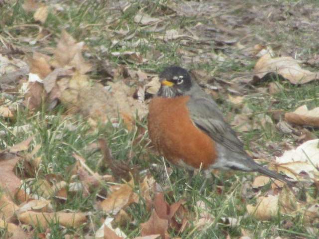 #1-A few American Robin (Turdus migratorius) have been here all winter but there are a lot more now. They don’t normally eat birdseed and the ground is pretty much frozen. They seemed a little bewildered hopping around looking at the ground hoping a worm would emerge… They often complain about bullying from the other birds, but with a name like Turdus…