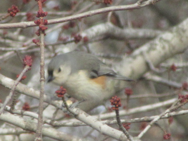 A Tufted Titmouse flew right on the feeder in front of me… For me, to be that close to a Tufted Titmouse was incredible. They are very cautious and trying to get a good photo of one was always a challenge. I have tried to get photos a multiple of times but they just won’t sit still. I have taken photos that are blurry and some even with no bird because by the time I took the shot they were gone. Watching it at the feeder so close kind of made me feel all warm ad fuzzy. OK, I made that part up…