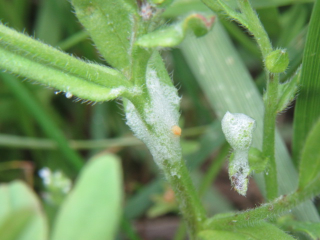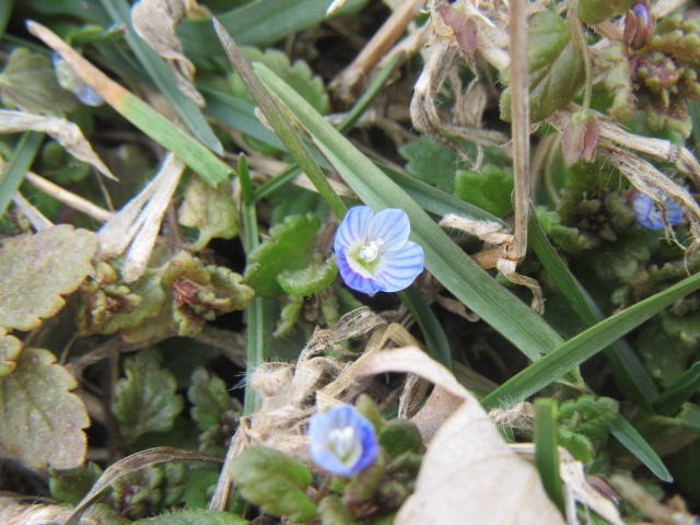#5-The Bird’s Eye Speedwell (Veronica persica) are the first wildflowers to bloom. There are thousands and they are VERY tiny. I had to use a magnifying glass to get this photo. A very similar species, Wayside Speedwell (Veronica polita), looks so similar I am not sure how to tell them apart. One supposedly has slightly smaller flowers, but I bet if you look the two side by side you may still be confused… Their fruits are different but there aren’t any yet since they have just started flowering. Ummm… Steyermark’s Flora of Missouri says V. persica flowers April-June and V. polita March-June. Hmmm… So, maybe this species is V. polita instead of V. persica. Photos of the stems on Missouri Plants shows they are kind of reddish on V. persica and greener on V. polita. The plants in my yard have green stems. Well, GEEZ! I was hoping for V. persica because I like the name “Bird’s Eye” better than “Wayside”. I did notice their flowers fall off very easily, too. Did I mention their flowers are VERY tiny?