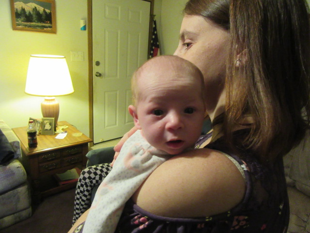 As I suspected would happen, Melissa wanted me to hold the baby… It doesn’t look like she was any too happy to meet grandpa.